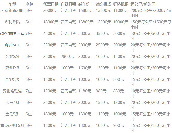 1.以上报价均不含等候费,等候费为轿车20元/小时,商务车50元/每小时,巴士80元/小时,等候时间壹小时内免费(市区计时),停车费另计。